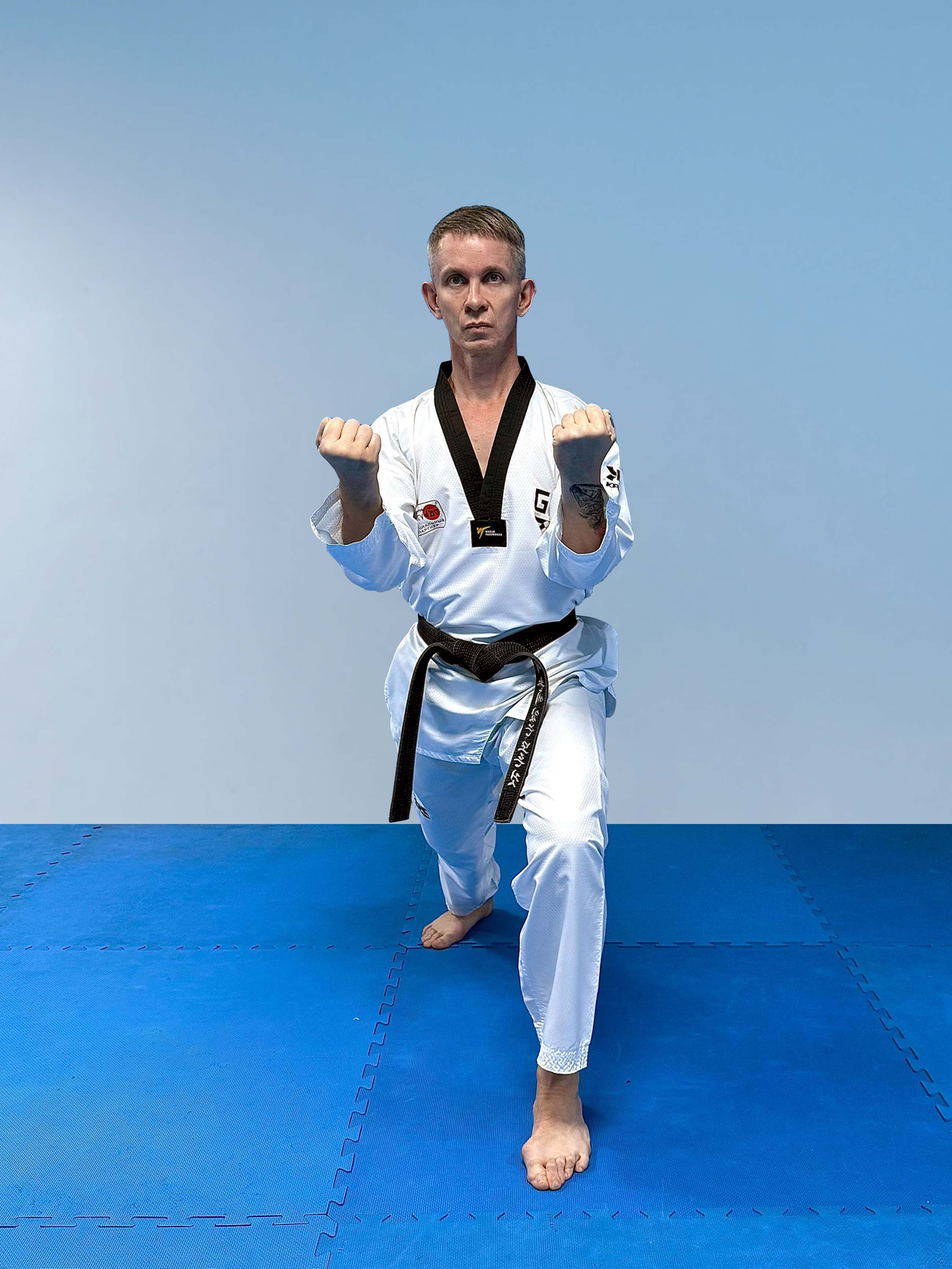 В заключительной точке выполнения блока следите за тем, чтобы оба внутренних запястья не отклонялись от внешней линии тела, верхняя часть кулака не не должна быть выше линии плеч, а оба локтя расположены свобобно и смотрят вниз, не отклоняясь в стороны или внутрь.