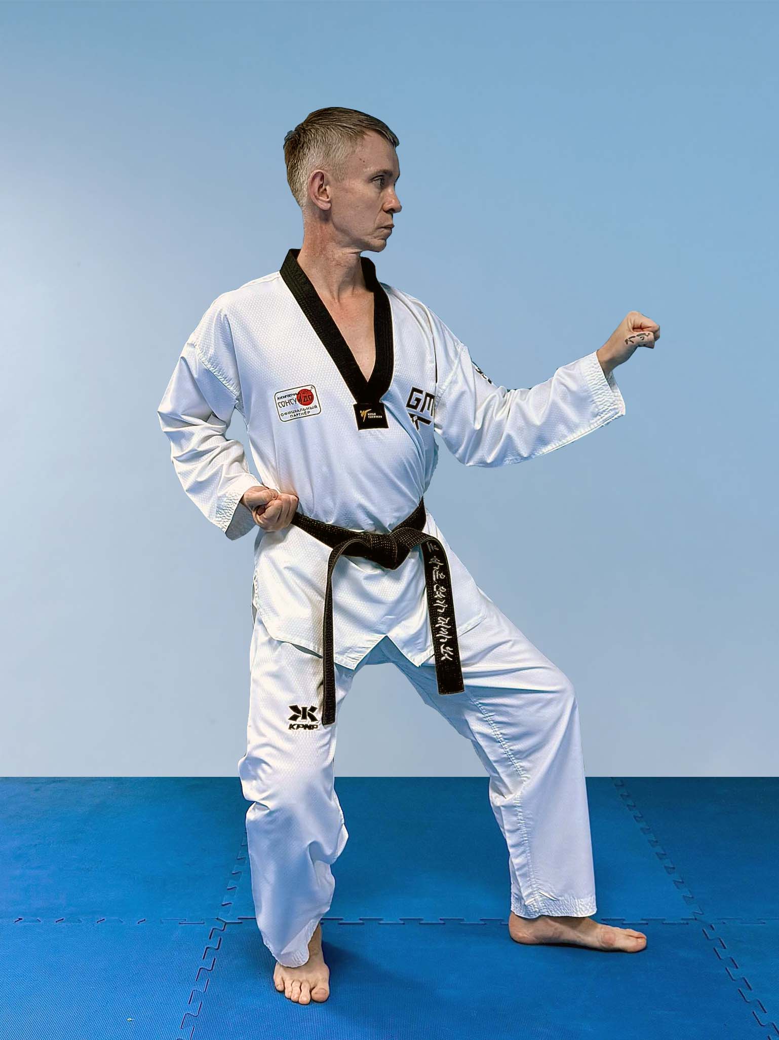 Одновременно, вспомогательная рука двигается наружу и оттягивается назад на пояс. Кулак следует расположить на гребне подвздошной кости основанием кулака (мечумок).