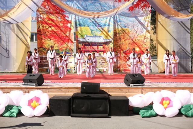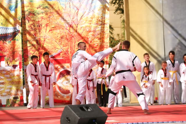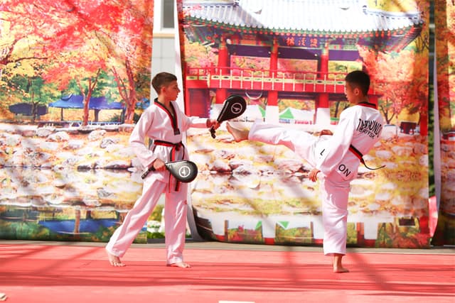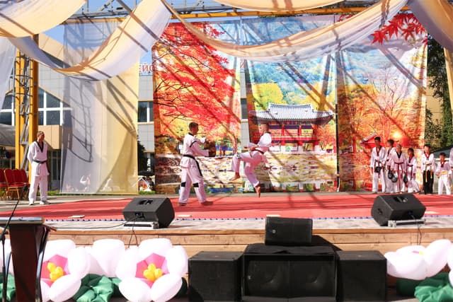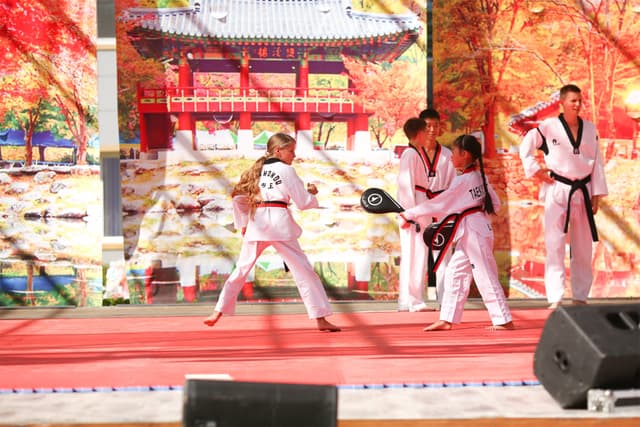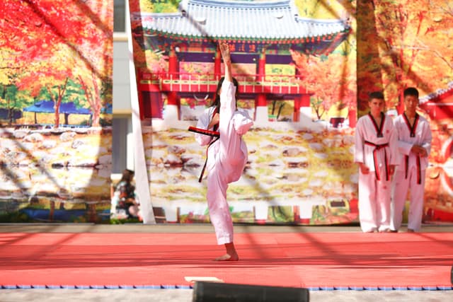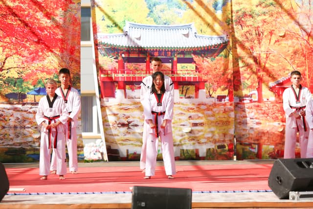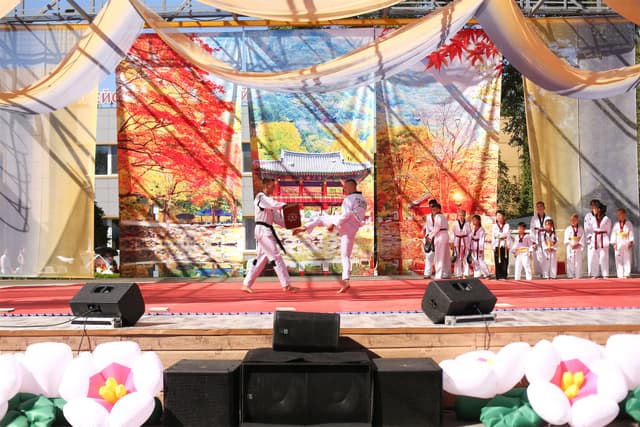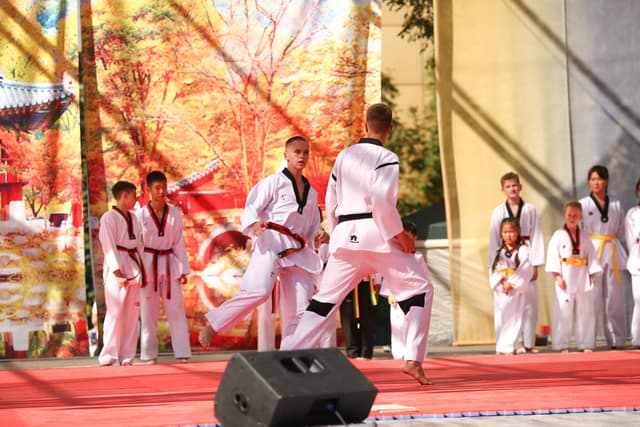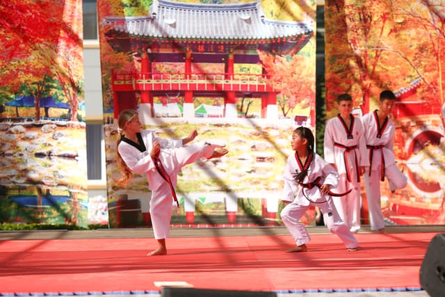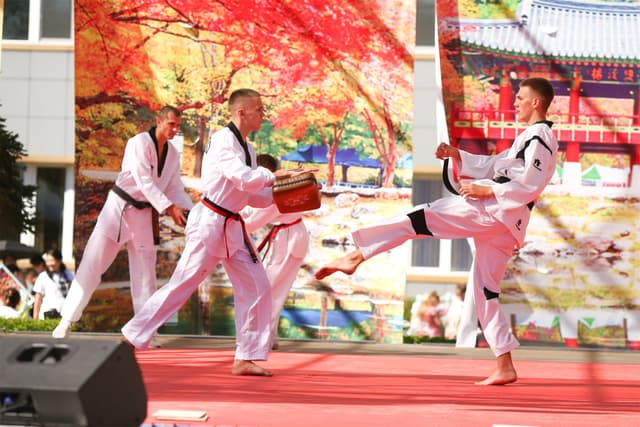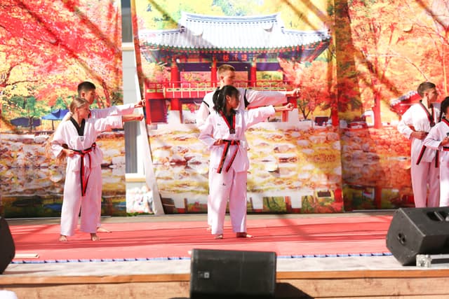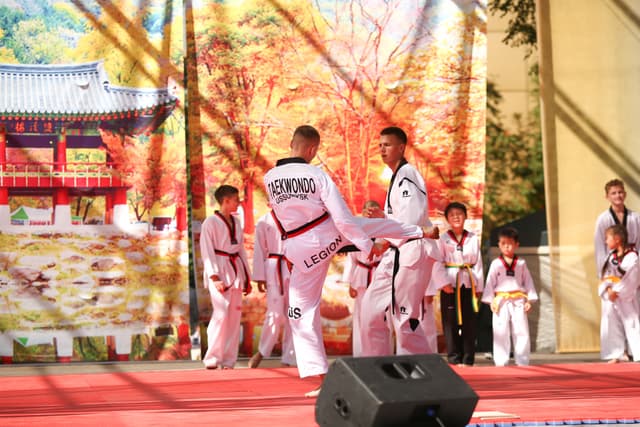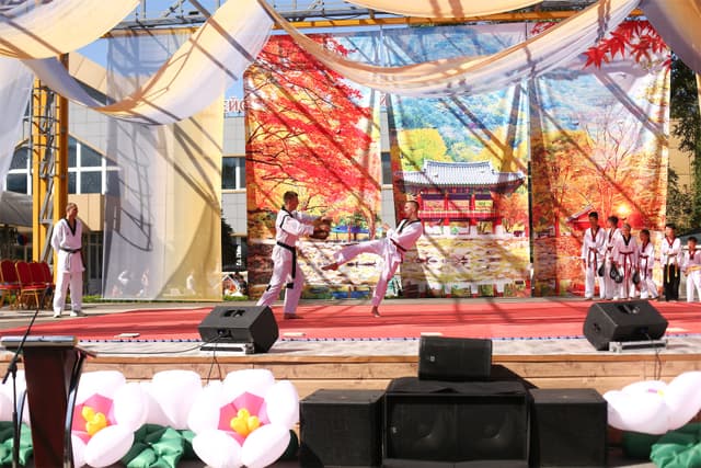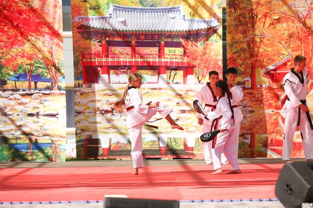 Также в числе участников фестиваля были наши спортсмены, которые продемонстрировали красоту традиционного корейского единоборства тхэквондо.