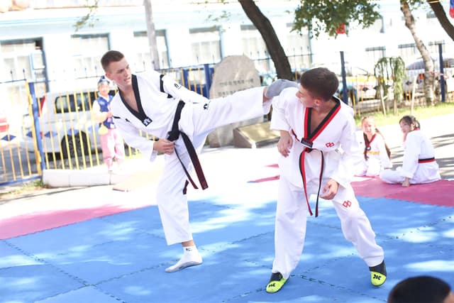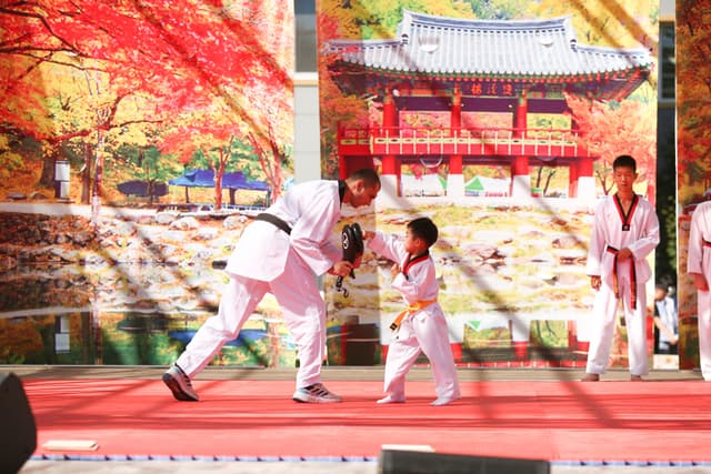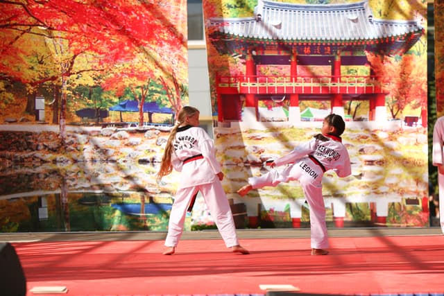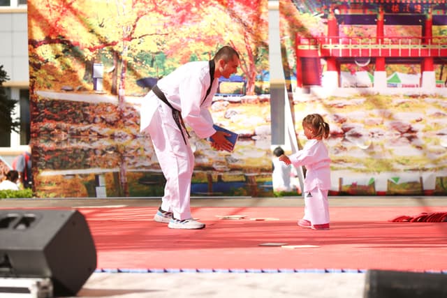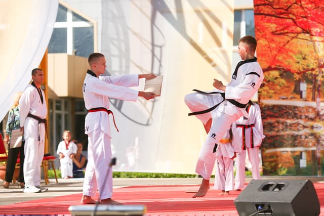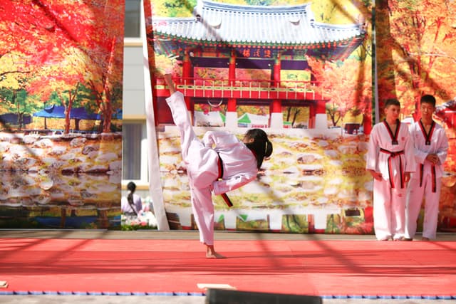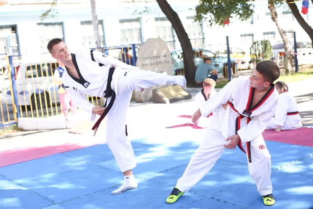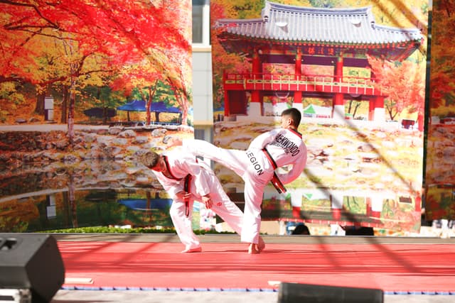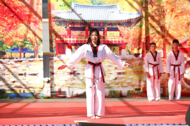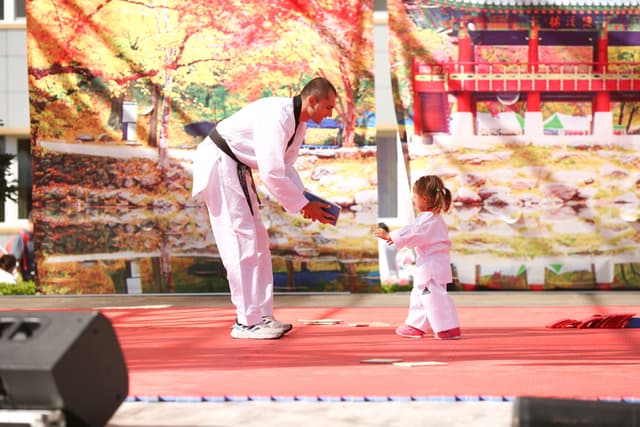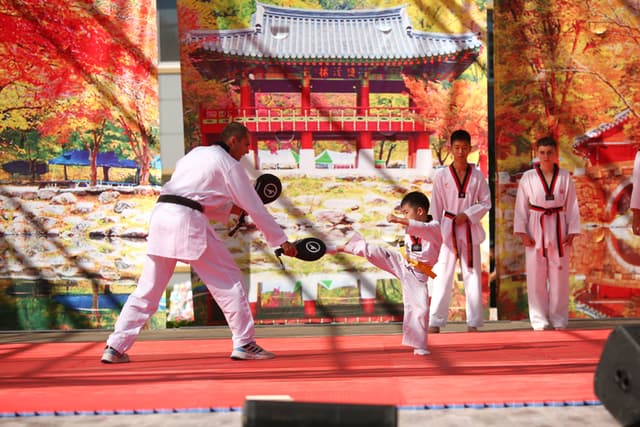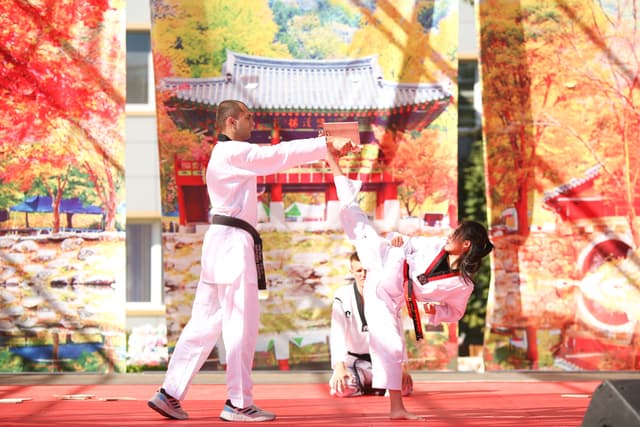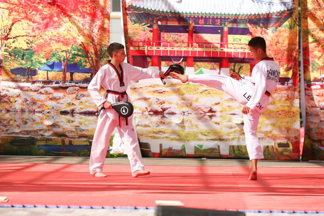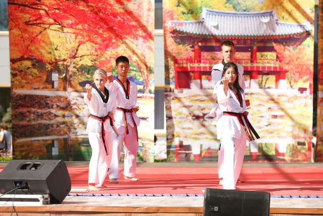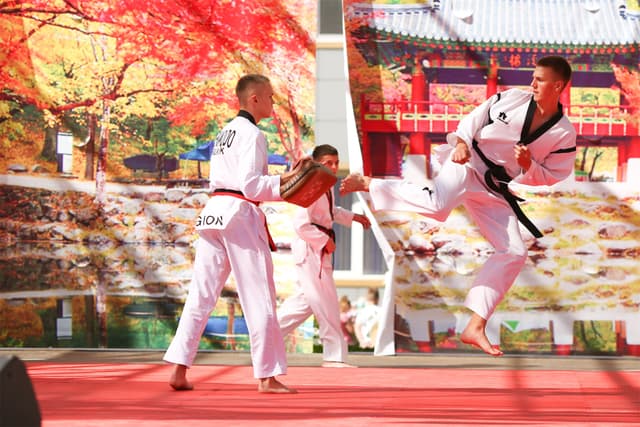 Также в числе участников фестиваля были наши спортсмены, которые продемонстрировали красоту традиционного корейского единоборства тхэквондо.
